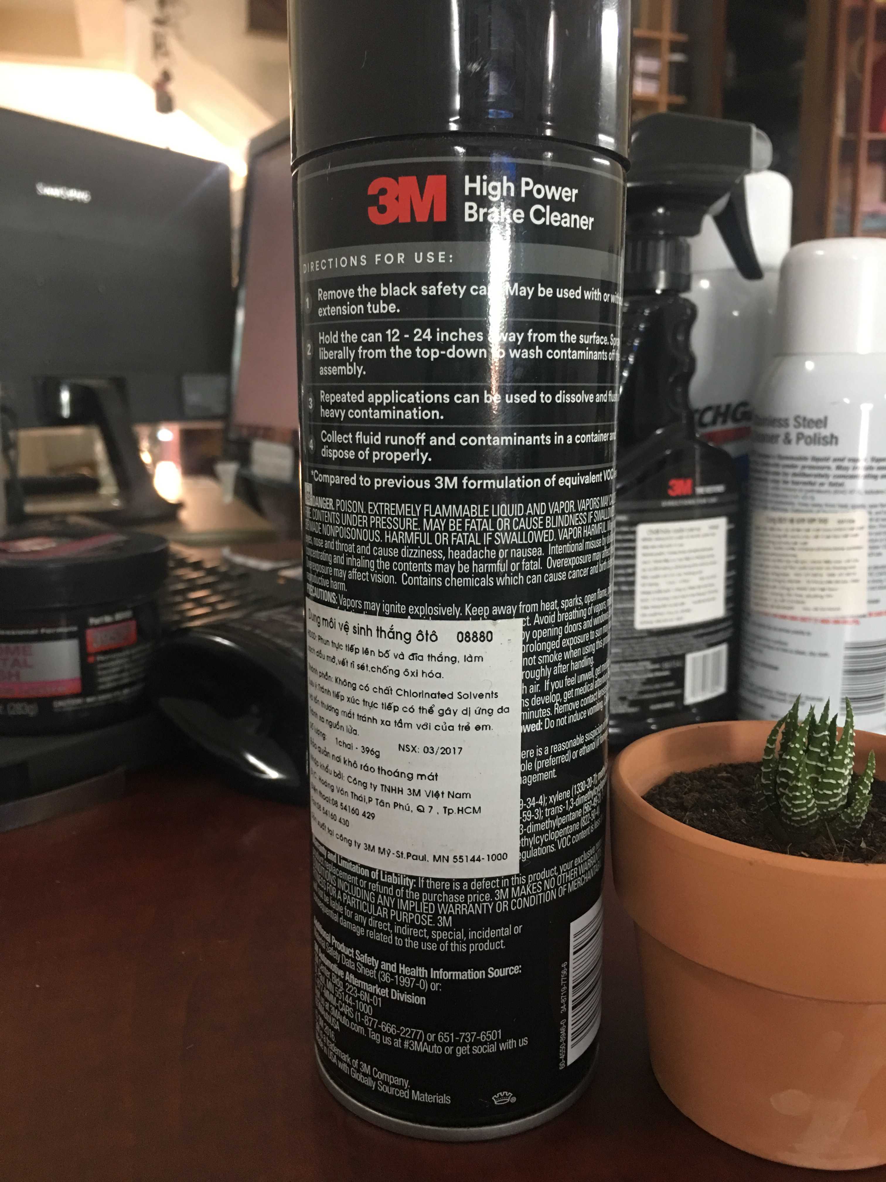 Dung dịch vệ sinh thắng 3M™ High Power Brake Cleaner thổi bay các vật liệu ma sát lỏng lẻo, bụi bẩn, bụi, dầu phanh và các chất bẩn khác từ tất cả các loại bộ phận phanh. Hành động làm sạch nhanh chóng của nó nhanh chóng làm mềm và hòa tan mỡ và dầu. Hóa học độc đáo với ít mùi khô nhanh chóng, không để lại cặn, và giúp loại bỏ tiếng ồn của phanh do nhiễm bẩn bề mặt. Nó không chứa dung môi có clo.