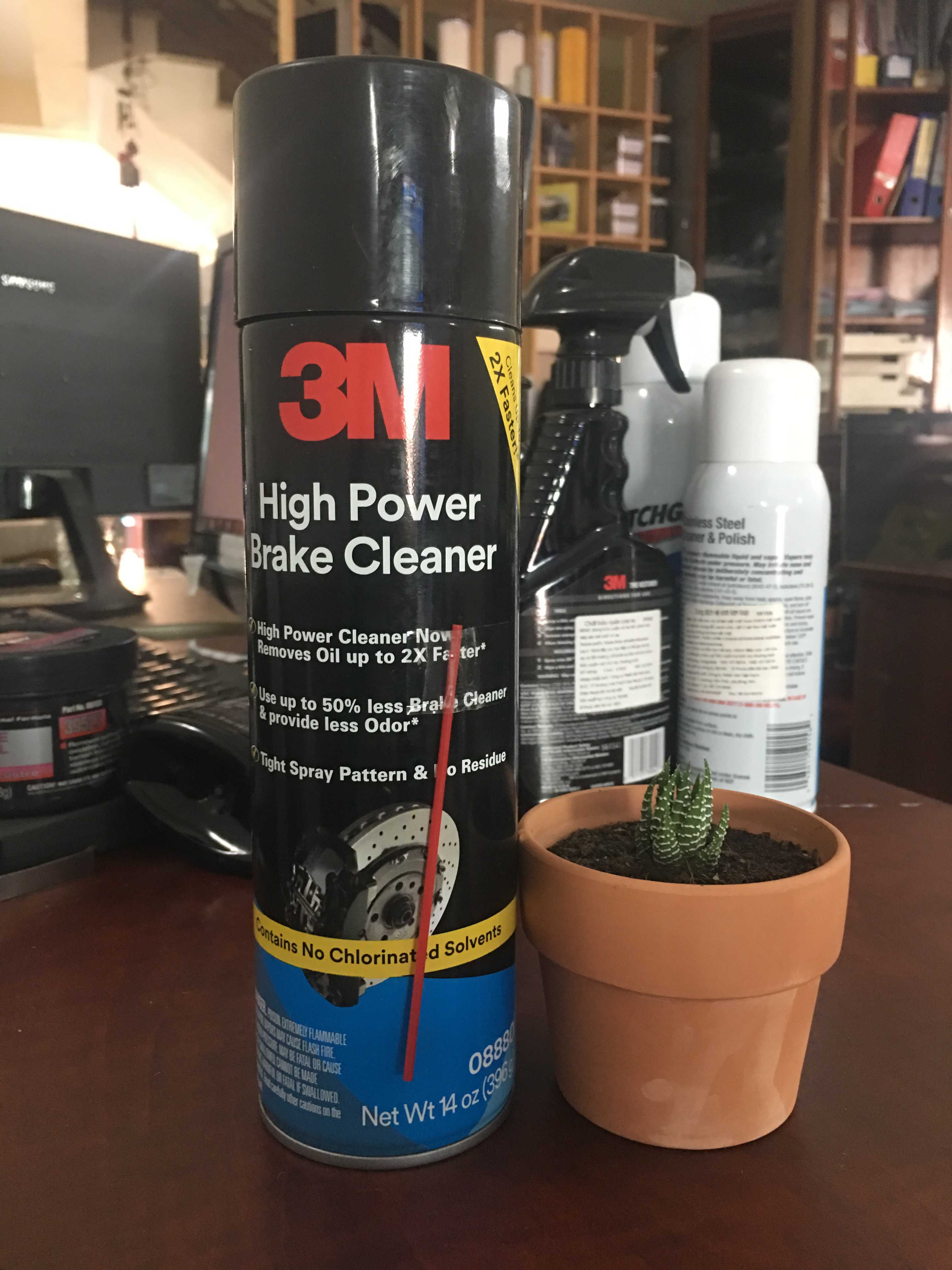 Dung dịch vệ sinh thắng 3M™ High Power Brake Cleaner hiện loại bỏ dầu nhanh gấp 2 lần, điều này nghĩa là kỹ thuật viên có thể sử dụng ít hơn đến 50% chất tẩy rửa thắng. Nó làm sạch các bộ phận và bộ phận lắp ráp của phanh mà không để lại cặn. Bộ điều khiển lớn, tiện dụng cung cấp một dòng phun mạnh để loại bỏ các chất cặn cứng đầu. Dung dịch này loại bỏ bụi phanh, dung môi, mỡ và dầu.