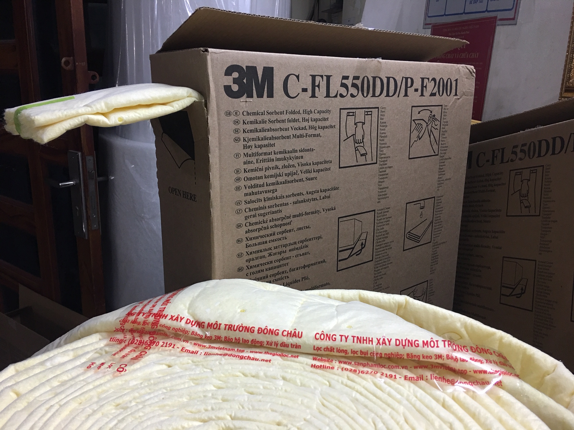 Cuộn thấm hút hóa chất 3M C-FL550DD do Đông Châu phân phối có thể sử dụng cho hầu hết các loại chất lỏng nguy hiểm và không nguy hiểm.