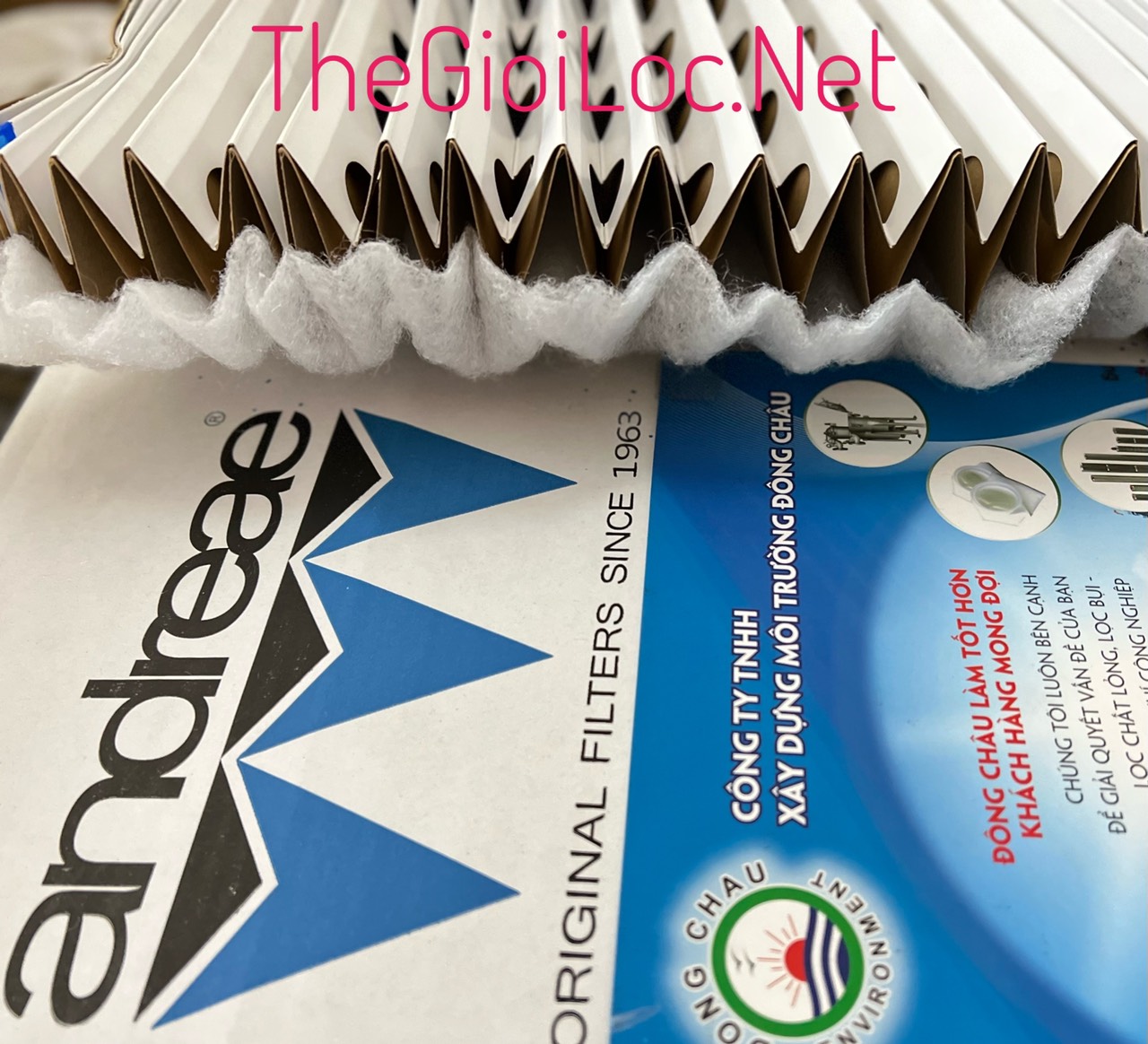 Bao bì sản phẩm giấy lọc 2 lớp Andreae dùng cho buồng phun sơn, lọc bụi sơn khô