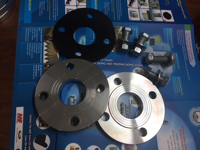 Ron cao su, mặt bích 2 inch và bulon kết nối đầu vào và ra của bình lọc túi size 1 và bình lọc túi size 2