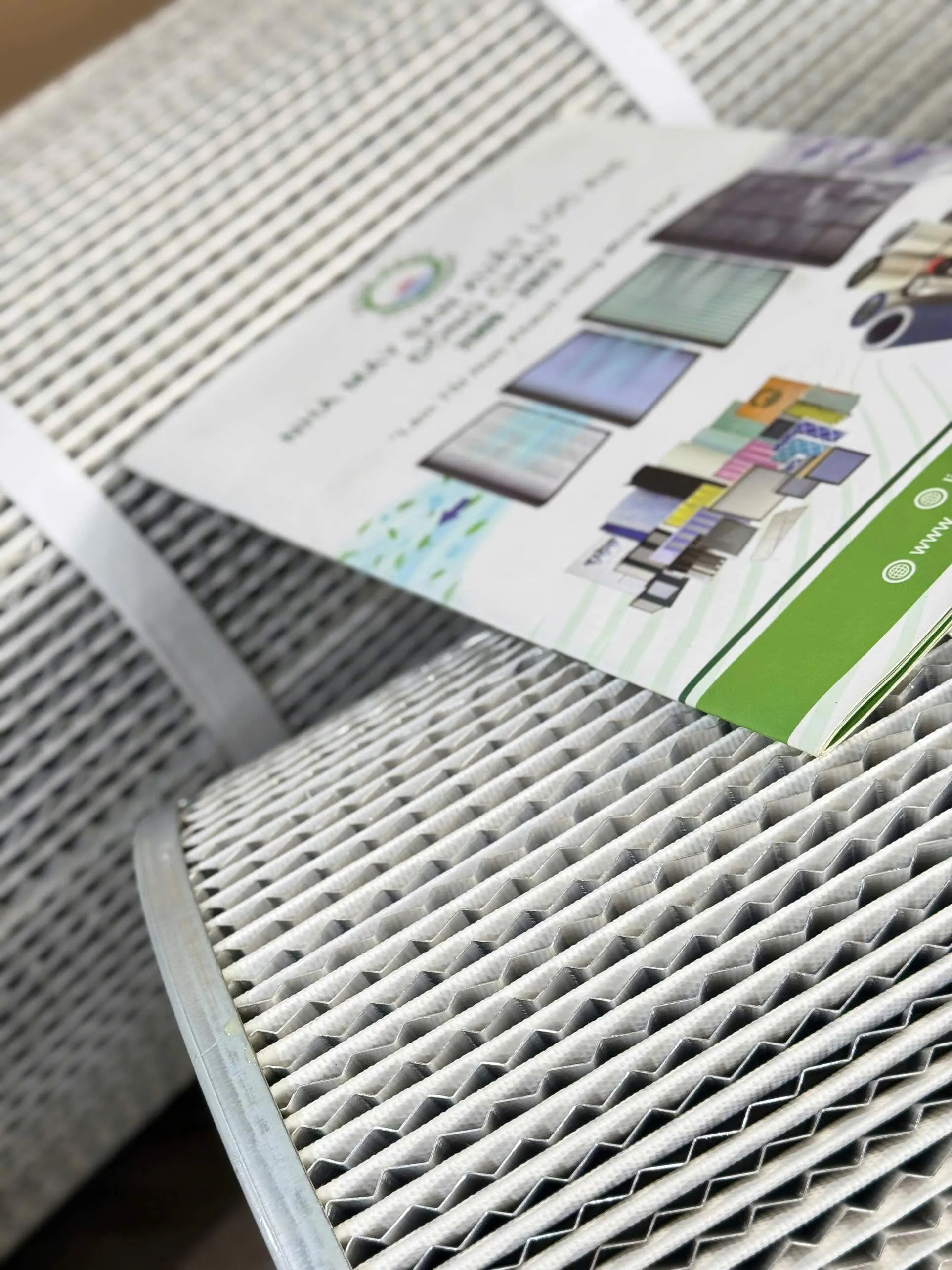 1 mặt lưới trong, các lớp nhôm lượn sóng điều hướng dòng khí, giữ nếp giấy ổn định